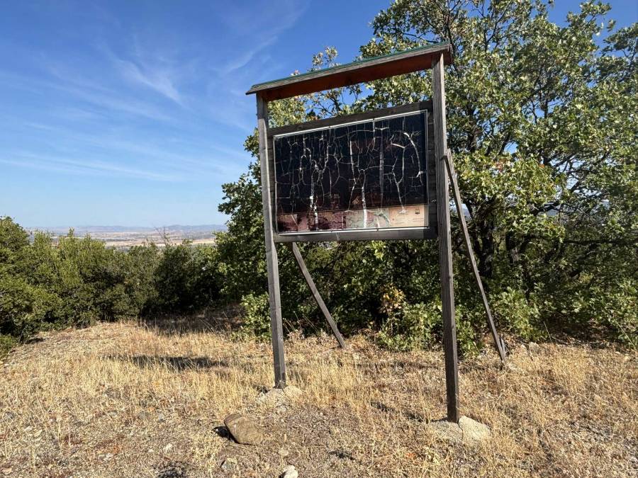 I continued following the trail to the unreadable info panel in the picture. This is also where the GPS track that I was following ended. However, as you can see on the satellite images, this is not where the Ramnishte Fortress is to be found.