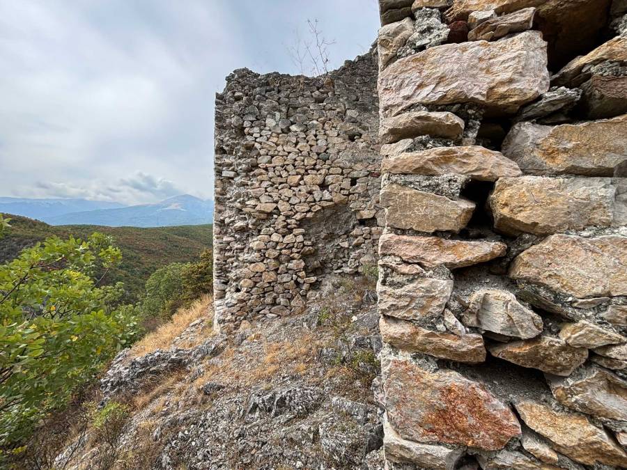 We parked the car along the road to Dolno Orashje and hiked the unpaved road up to the fortress, approaching it initially from the north side. The walk up to the fortress and back was also interesting due to the nice environment and views. The main remnants are the towers on the North and South parts of the site. In the west there were clear remains of a wall as well.