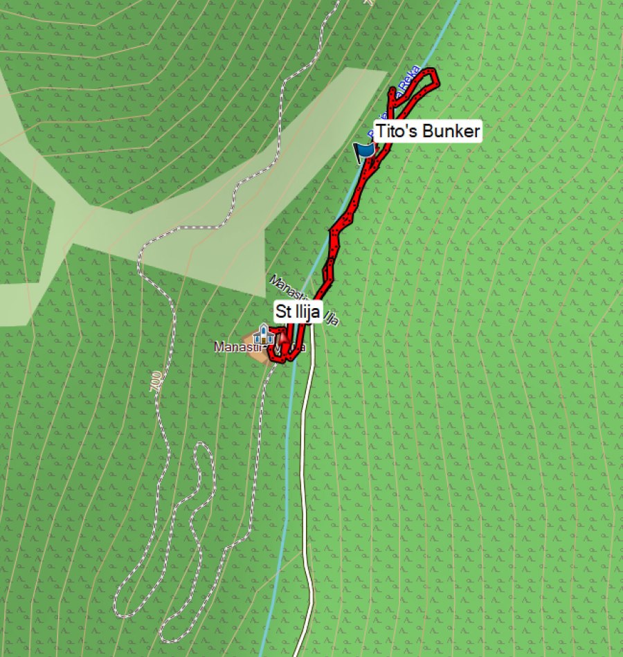 You can view and download the GPS track to reach the bunker here: https://www.wikiloc.com/hiking-trails/titos-hideout-bunker-and-st-ilija-monastery-near-banjane-235802538