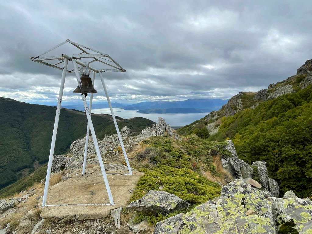 Shortly you arrive at the Church of St Spas, where there is a picnic table and a small bell tower. The church was locked. At the Church of St Spas you’re still about 400 m (and 100 m climbing) away from the Vrteshka peak. We visited the peak before having lunch. From the Vrteshka peak you really have amazing views of Lake Prespa and the uninhabited island Golem Grad (also known as Snake Island and Pelican Island) was clearly visible.