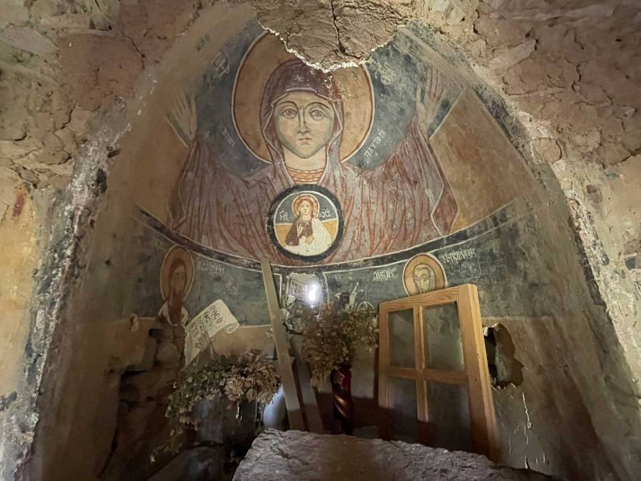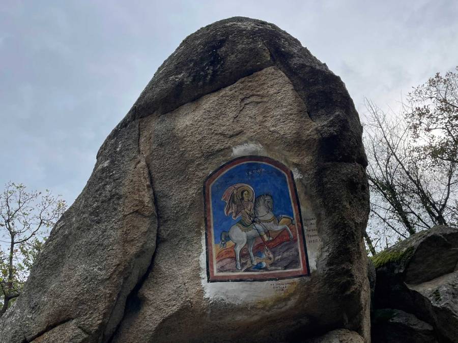 Just before the bridge there is a fresco of St George on a rock. The original fresco dates back to 1925 and it was restored in 2006.